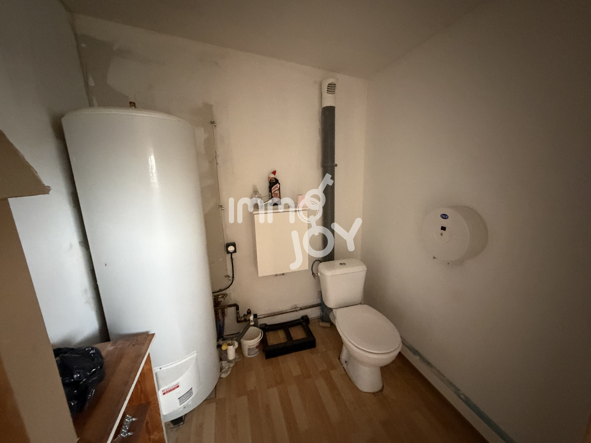 Ce local est composé d'une grande pièce principle au RDC avec un point d'eau (lavabo et son meuble sous vasque) puis d'un étage proposant une belle pièce avec fenêtre et son volet roulant, un point d'eau et un toilette séparé (ballon d'eau chaude). Sols en carrelage gris et non pas en parquet.