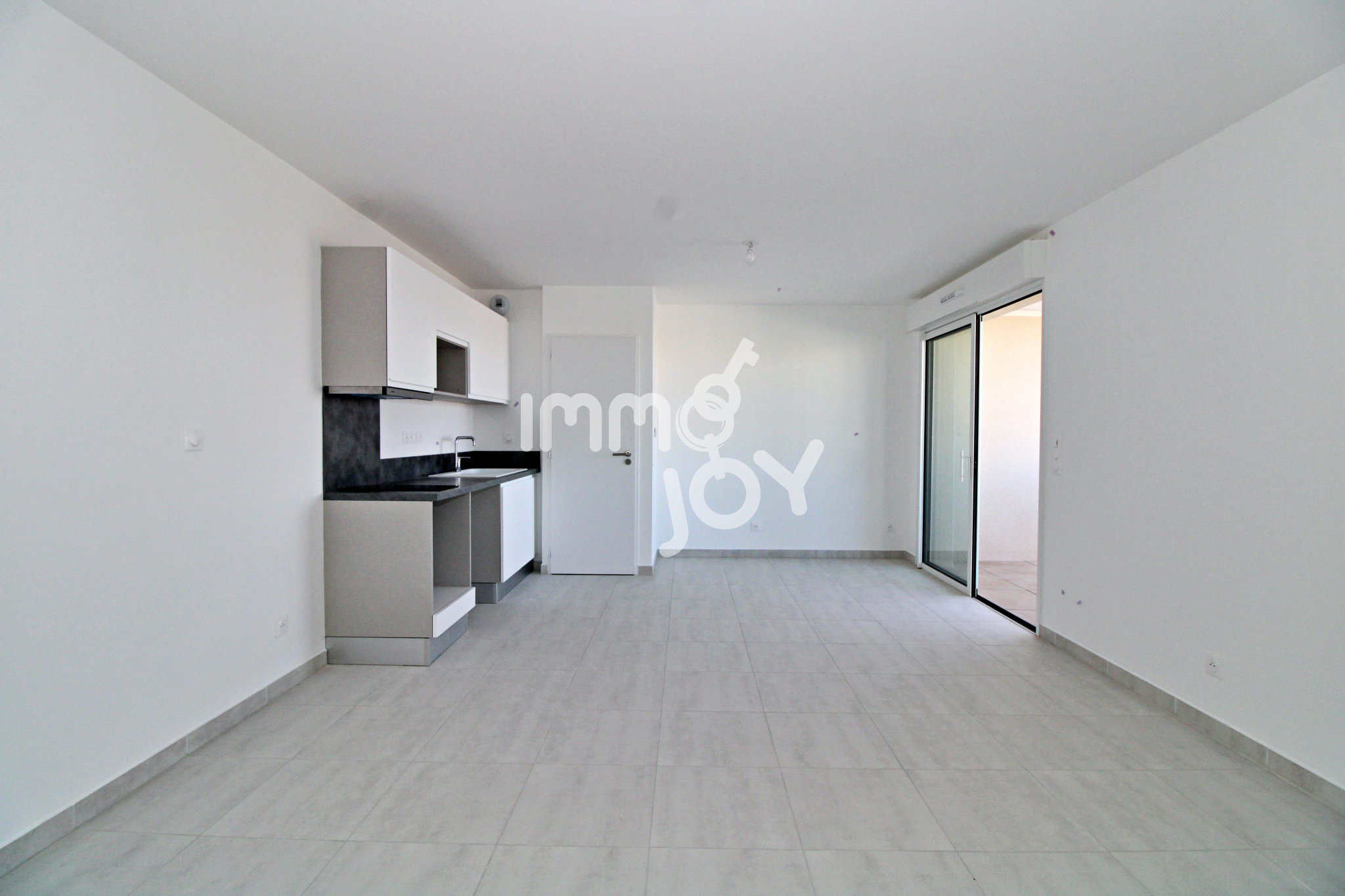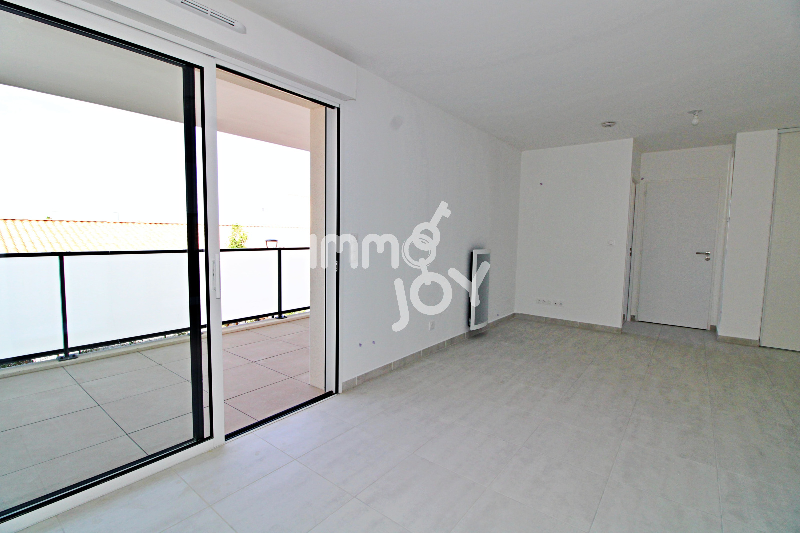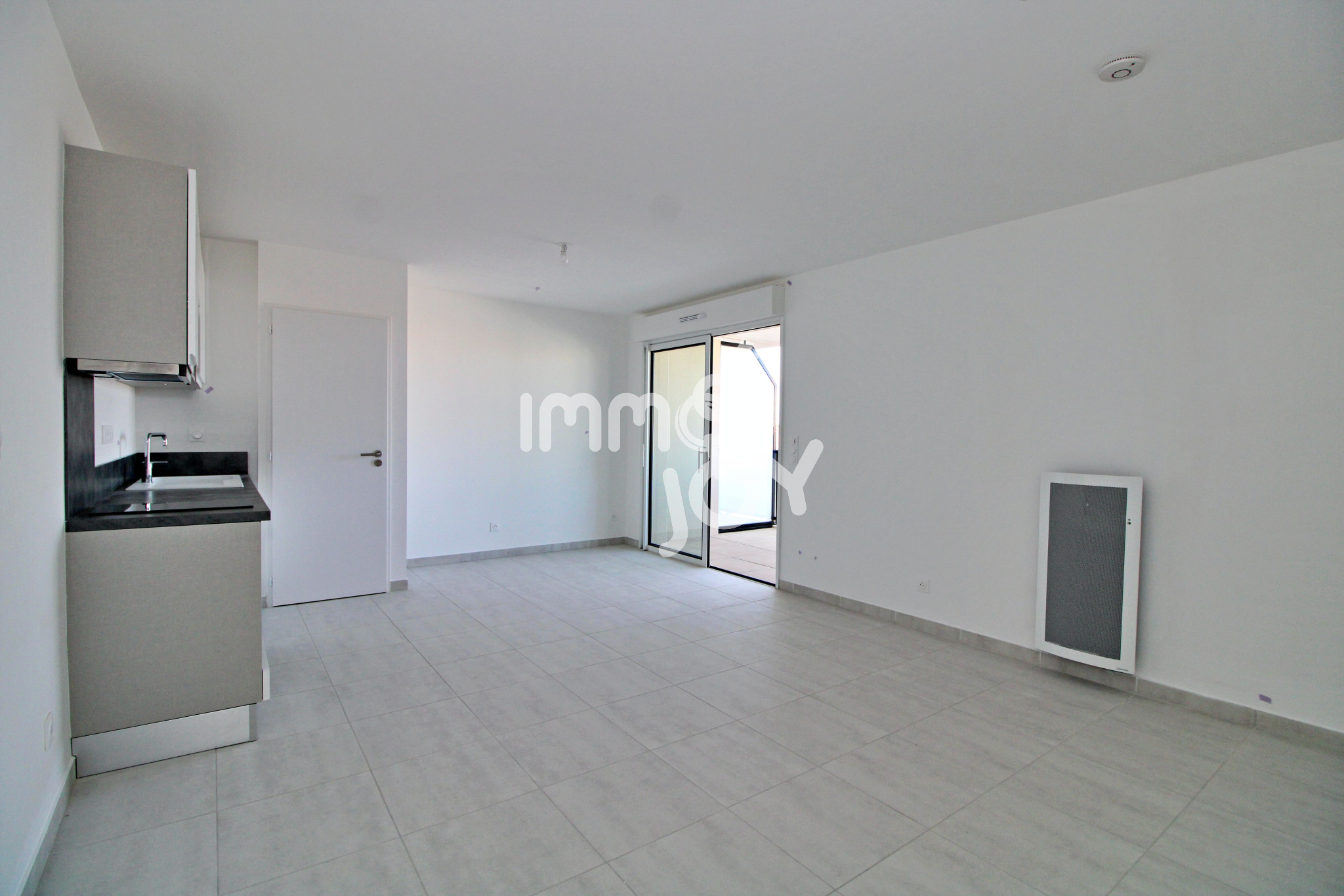 L'espace de vie de 26 m² est composé d'un séjour (avec climatisation réversible) donnant sur une belle terrasse couverte de 9,5 m², d'une cuisine ouverte aménagée et semi équipée (plaque à induction et hotte aspirante).