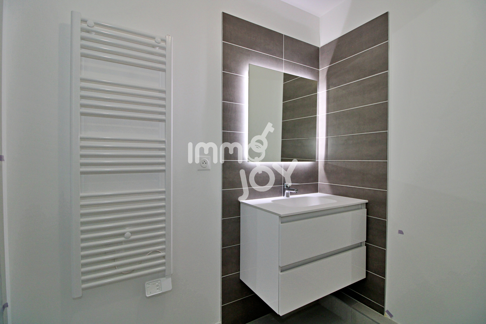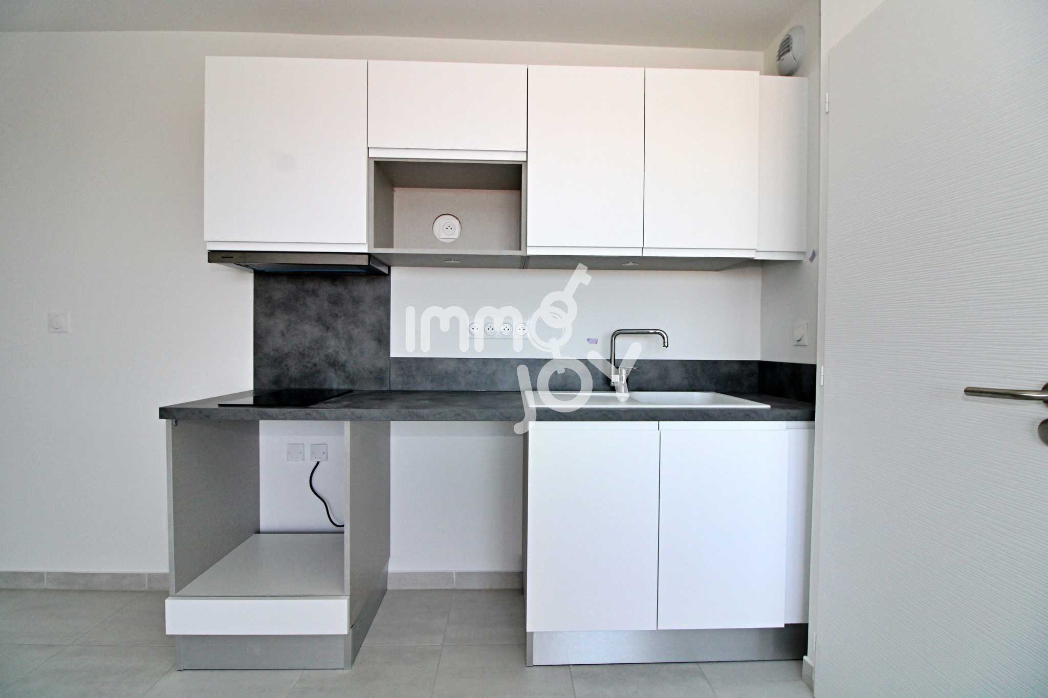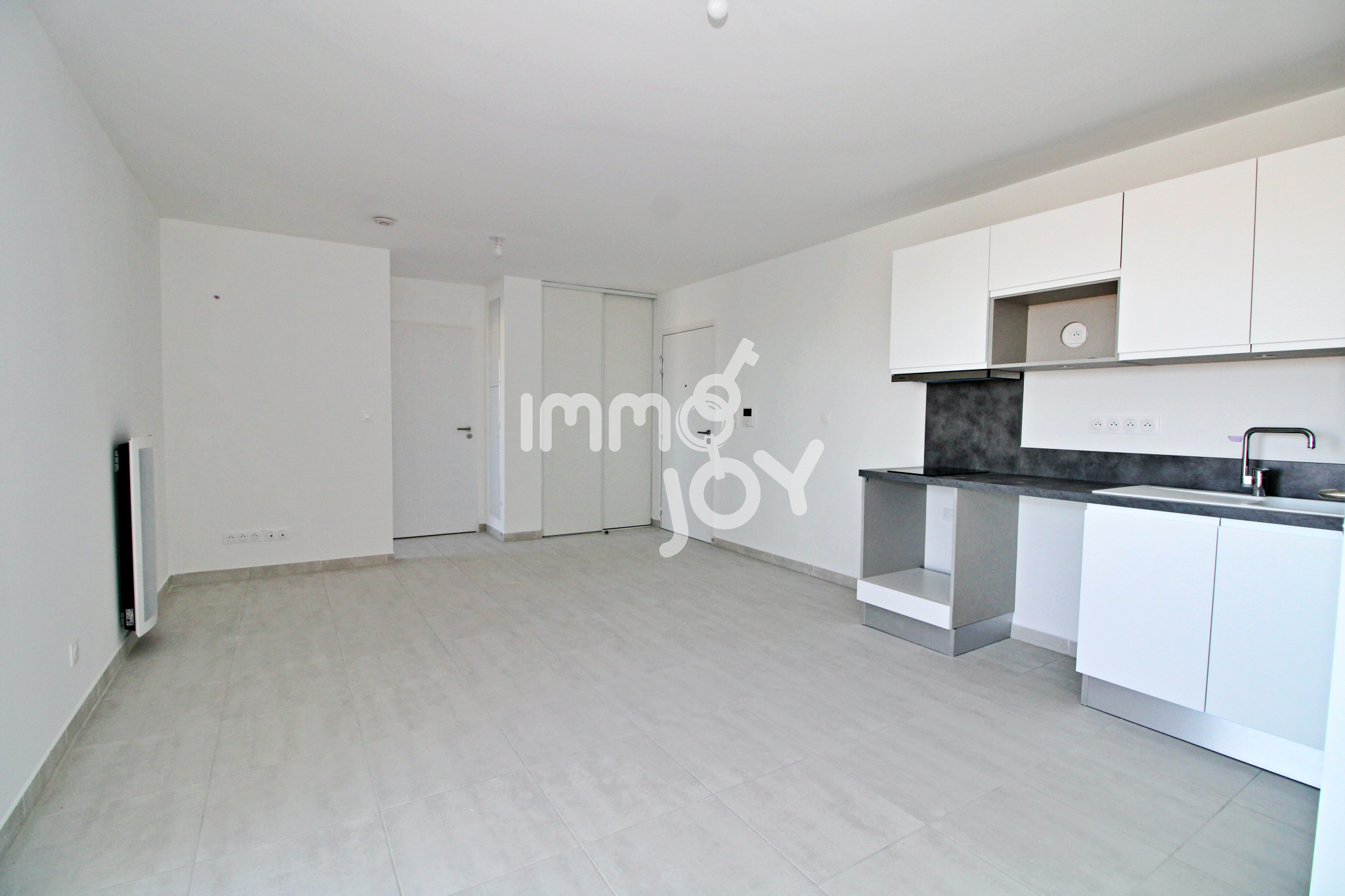 L'espace de vie de 26 m² est composé d'un séjour (avec climatisation réversible) donnant sur une belle terrasse couverte de 9,5 m², d'une cuisine ouverte aménagée et semi équipée (plaque à induction et hotte aspirante).