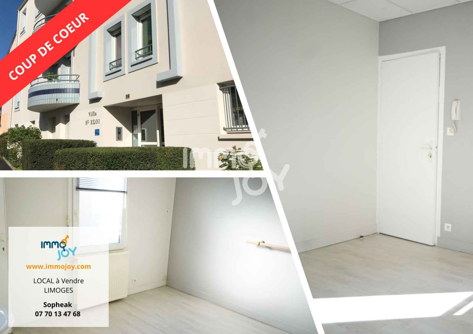 Votre conseiller IMMO JOY a le plaisir de vous proposer a la vente ce beau local professionnel de 30 m², situe dans le secteur CARMES - EMAILLEURS - LIMOGES, a proximite de toutes les commodite), bénéficiant d'une bonne visibilité. Il se compose de 2 pièces: une grande entrée servant de salle d'attente (7.57m²), une première pièce lumineuse ( 6,1m²), une grande pièce avec point d'eau (12,32m²) et un wc indépendant avec point d'eau. Ce local bénéficie également d'une cave. Vous souhaitez une estimation gratuite ou vous avez un projet d'achat contactez votre conseiller Sopheak specialiste du secteur LIMOGES - BRIVE - GUERET (LIMOUSIN).