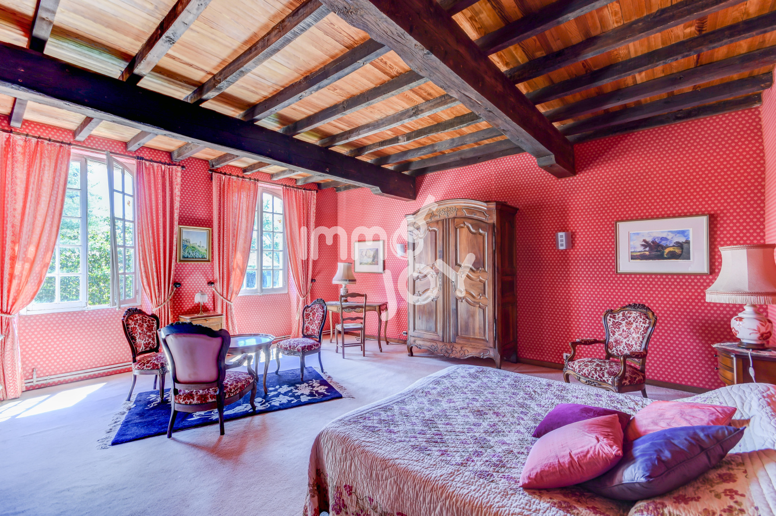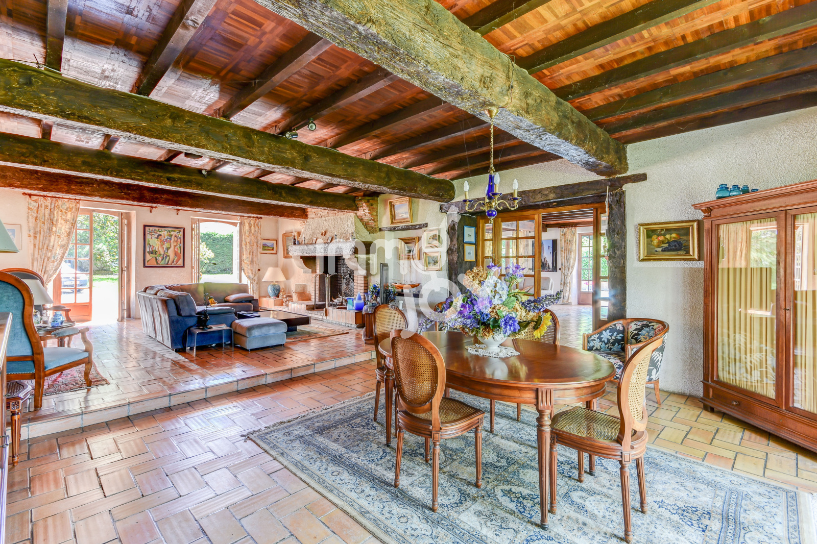 Cette luxueuese propriété, très bien entretenue, possède des pièces immenses, 5 chambres, 3 salles de bain, 4 wc, plusieurs salons et pièces et offre donc de réelles possibilités d"aménagement en vue d'une vie de famille, de chambres d'hôtes, etc.