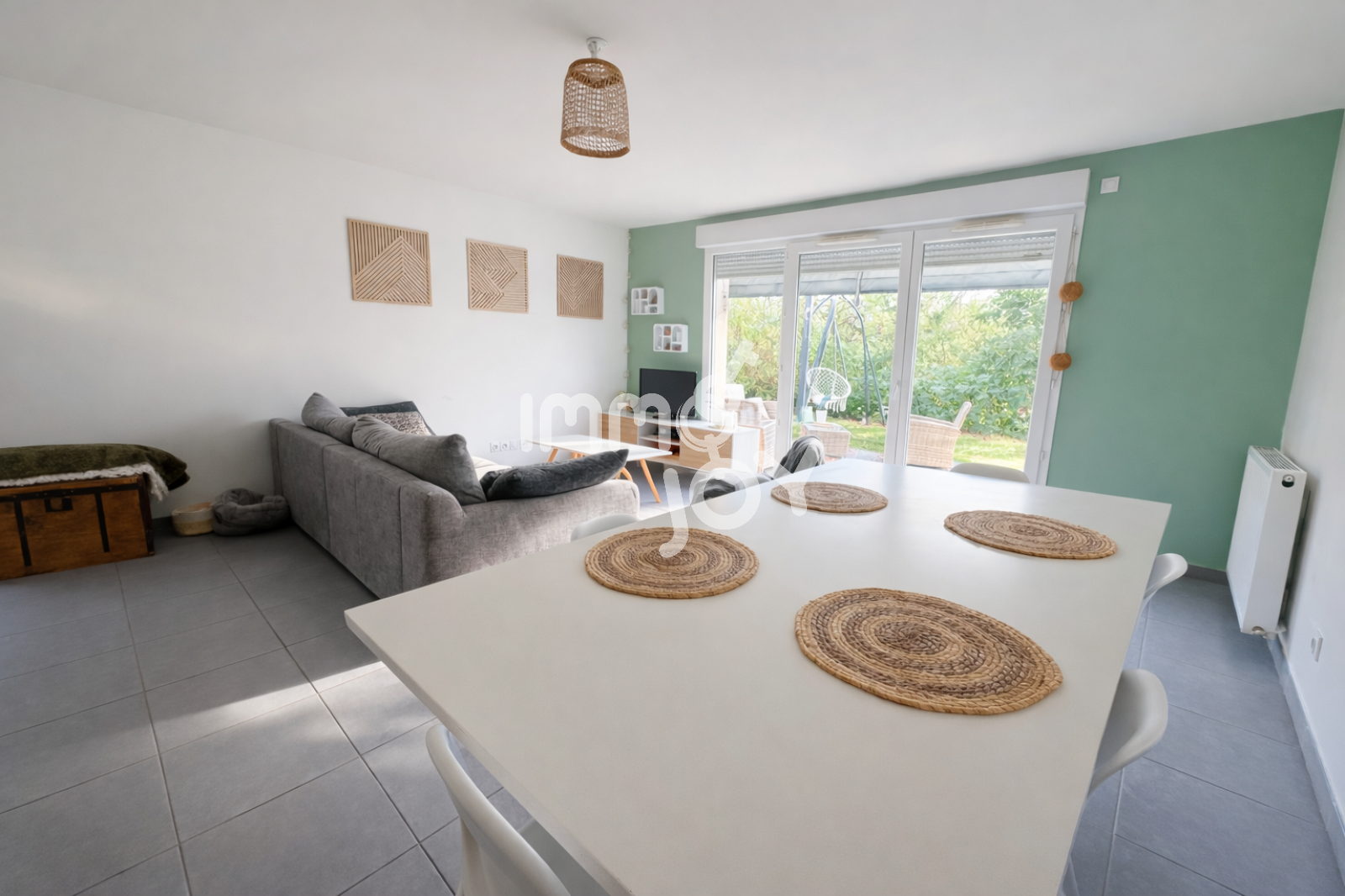 Elle offre un bel espace de vie lumineux bénéficiant d’une ouverture directe sur une agréable terrasse et un jardin soigné sans vis à vis parfait pour profiter de moments de détente en toute intimité