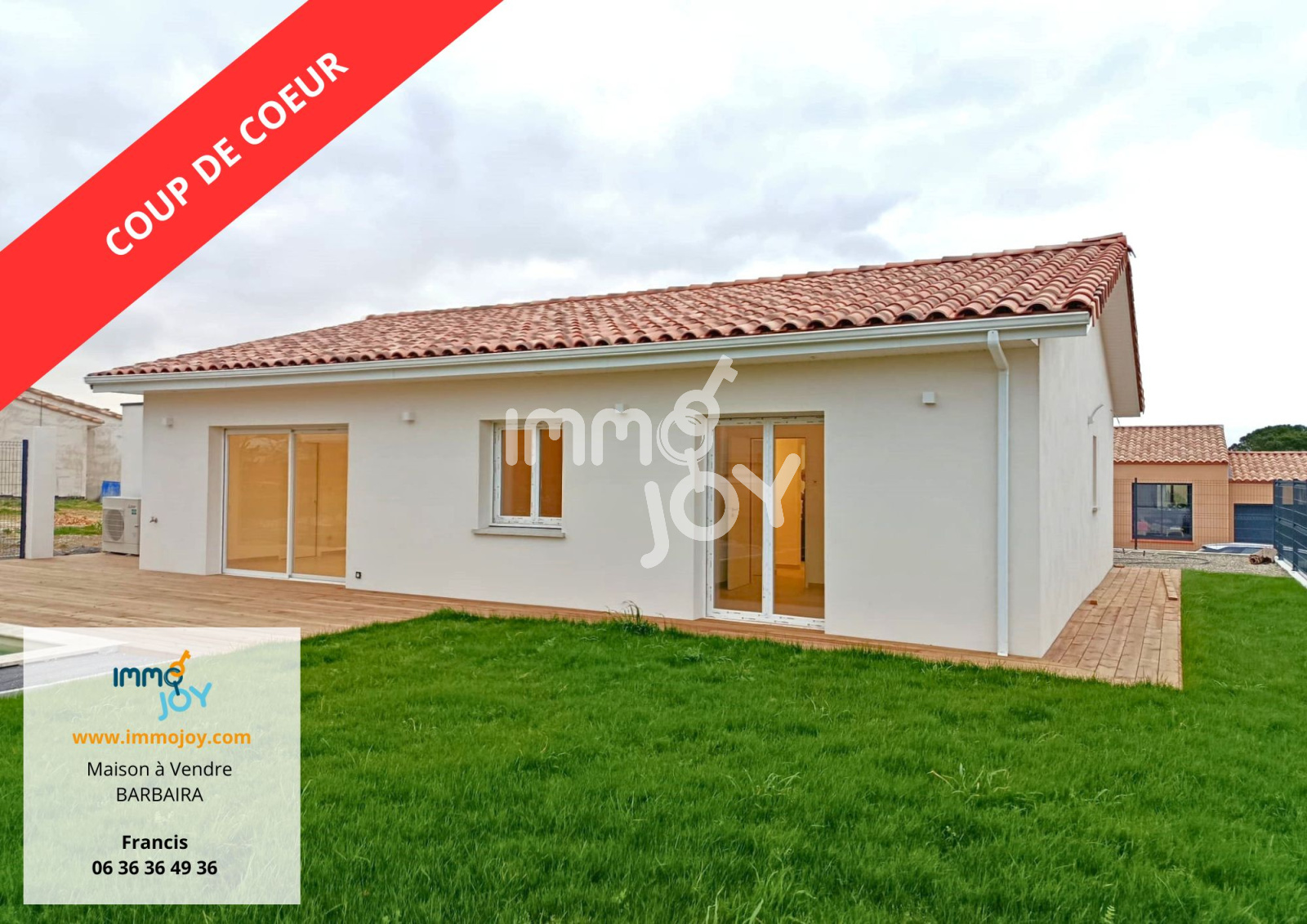 IMMOJOY vous présente à BARBAIRA, village paisible, situé à 15 kilomètres de Carcassonne cette agréable maison neuve de plain-pied de type 4 de 105 m² sur un terrain de 512 m².