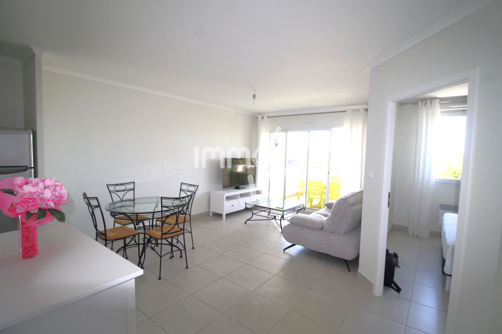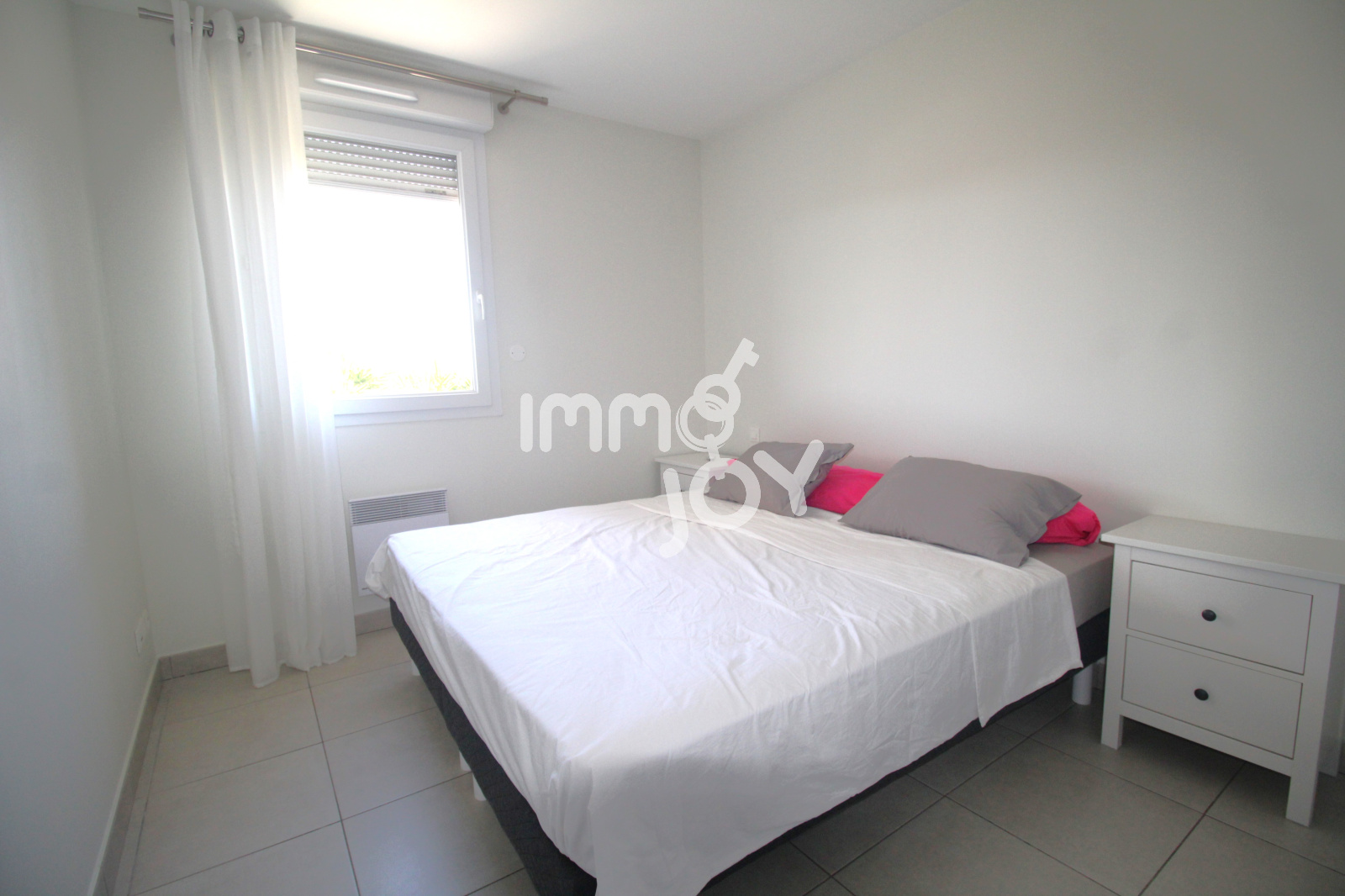 L'appartement est comme neuf, il se compose d'une entrée, un séjour avec cuisine de 25m², une buanderie, une chambre de 11m², une salle de bain et des toilettes séparé. Le plus, une grande terrasse de 9m² sans vis-à-vis exposée plein sud et une place de parking. L'appartement est équipé de fenêtre double vitrage, volet roulant électrique et d'une climatisation réversible.