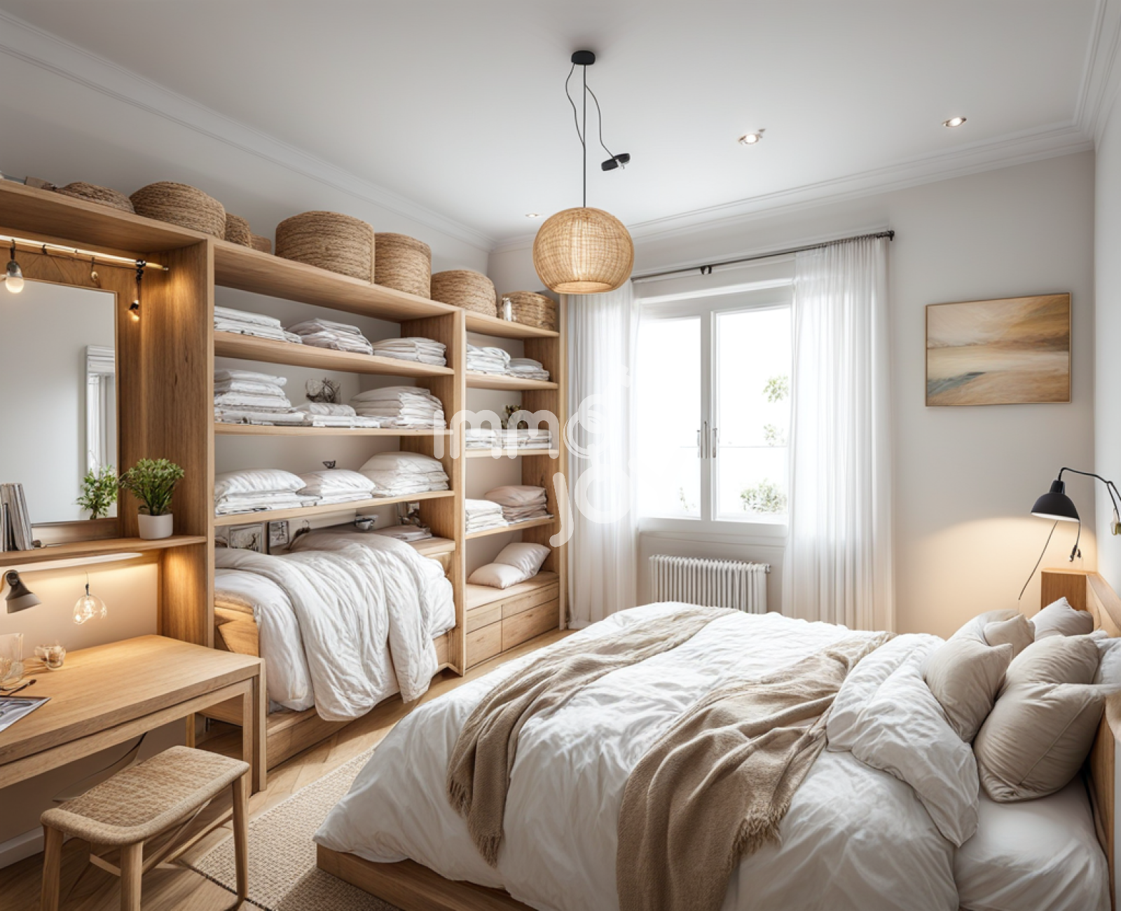 Un espace nuit optimisé Avec deux chambres au rez-de-chaussée, un bureau attenant et une chambre en mezzanine, chaque membre de la famille trouvera son cocon parfait. Une spacieuse salle de bain vient compléter cet espace confortable.