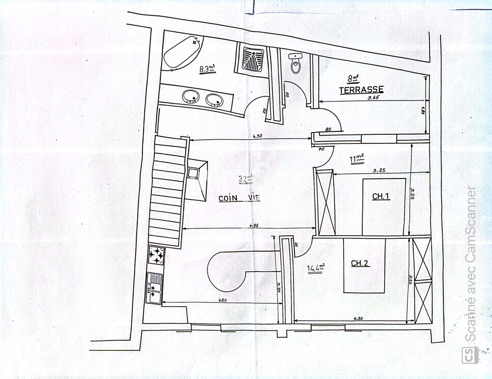 * Rez-de-chaussée : grand garage de 50 m²