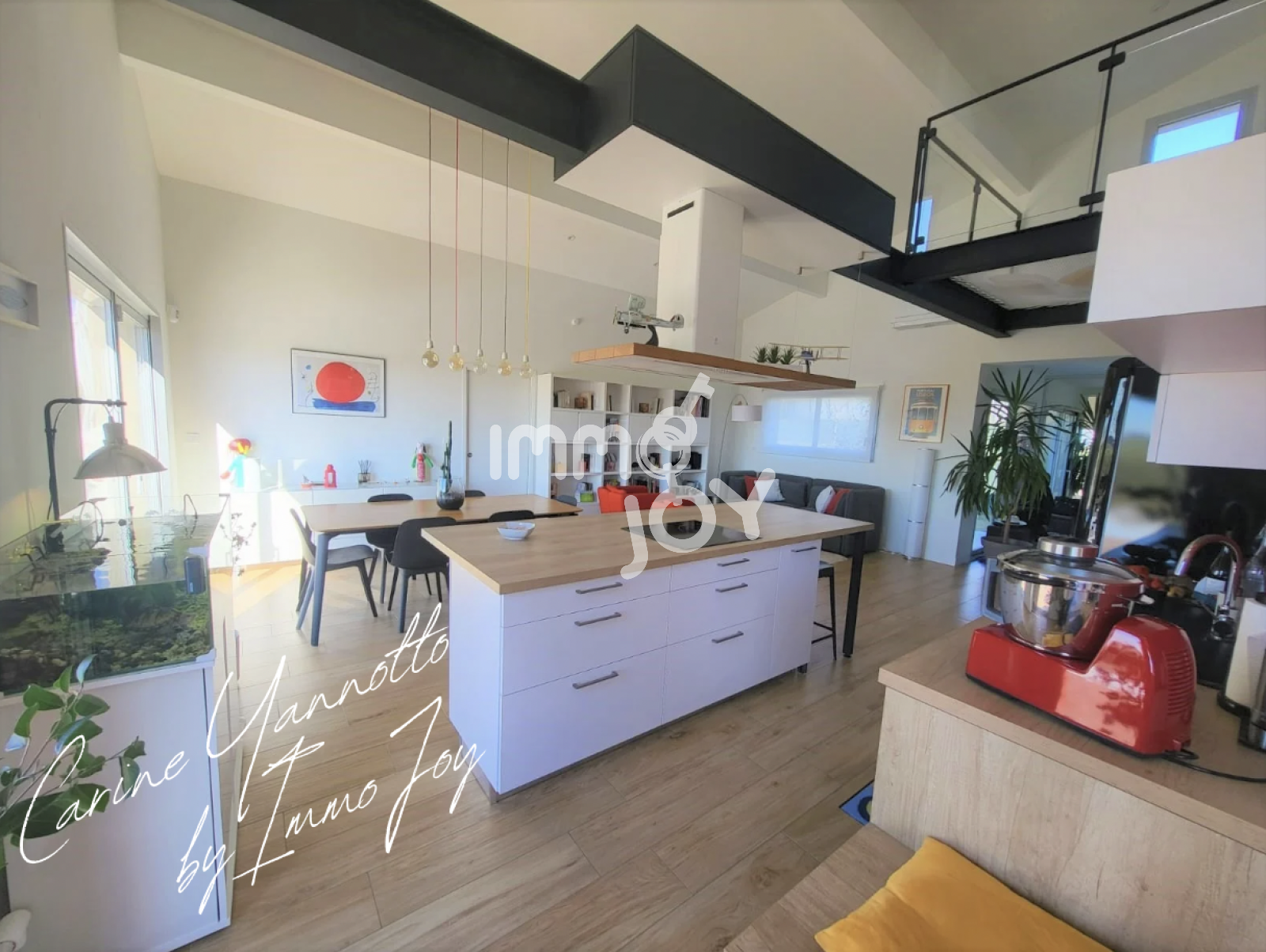 Dès l'entrée, vous apprécierez le volume généreux de la pièce de vie, composée d'un coin salon salle à manger ainsi qu'une cuisine ouverte de belle facture, un coin télé indépendant, le tout développant une surface de 70 m².